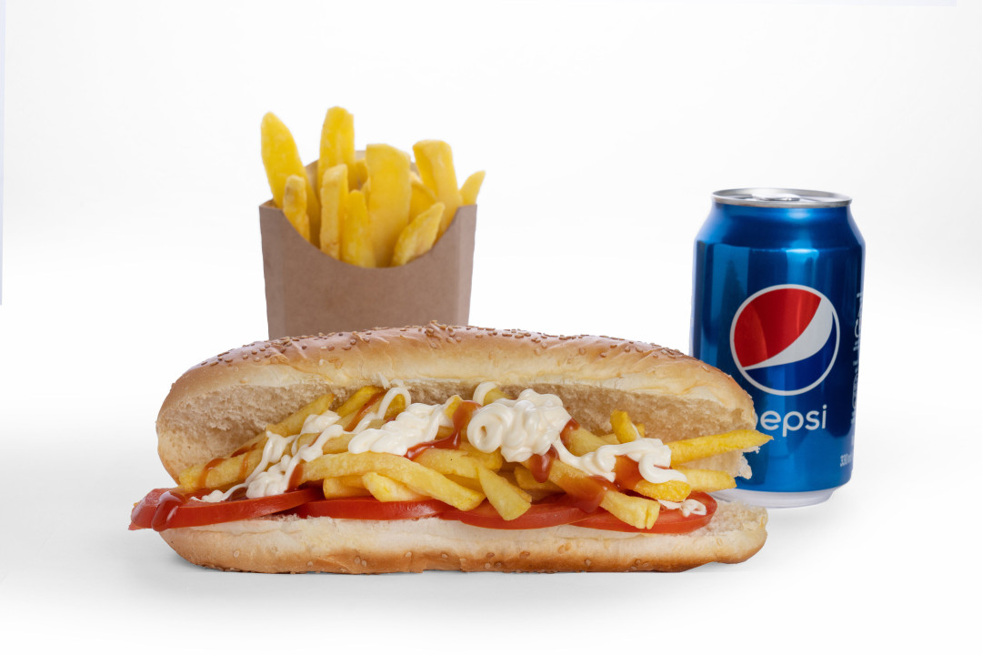 بطاطا / كول سلو / كتشب / مخلل خيار / كريم توم / شرائح طماطم + علبة بطاطا مقلية + مشروب (منتج تركي) من اختيارك