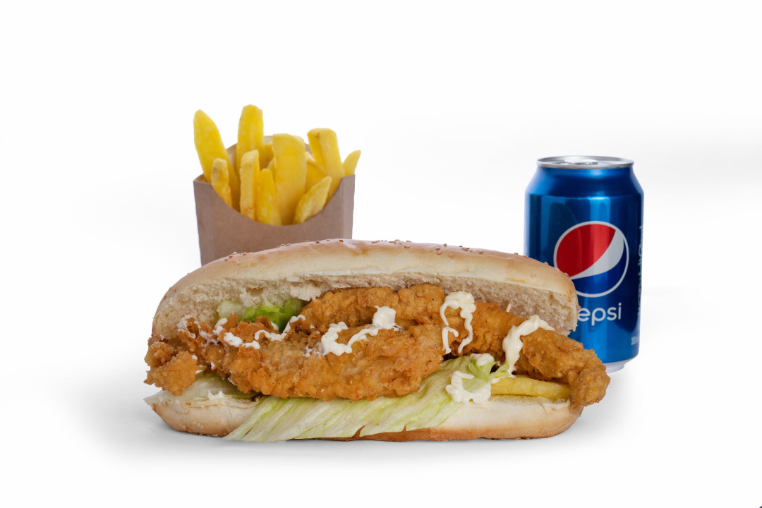 قطع صدر الدجاج المقرمش/ كريم توم /كول وسلو / خس / بطاطا / سلامي + علبة بطاطا مقلية + مشروب (منتج تركي) من اختيارك
