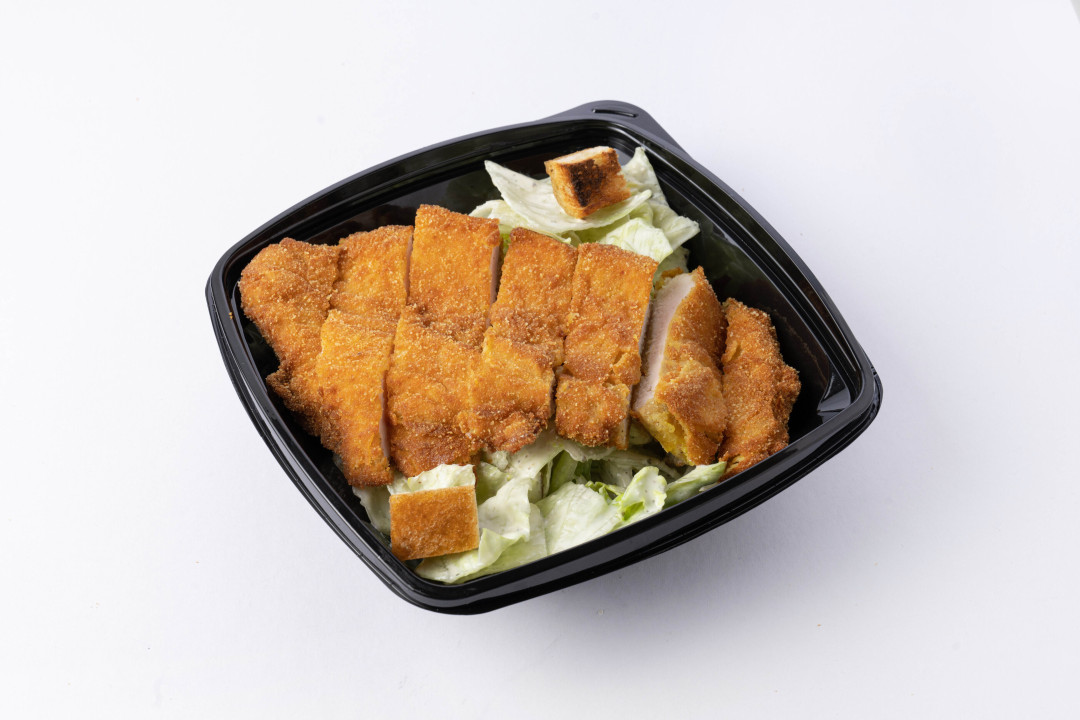 خس / ميونيز / عصير برتقال/ بارميزاتن / خل / توست / صدر الدجاج المقلي
