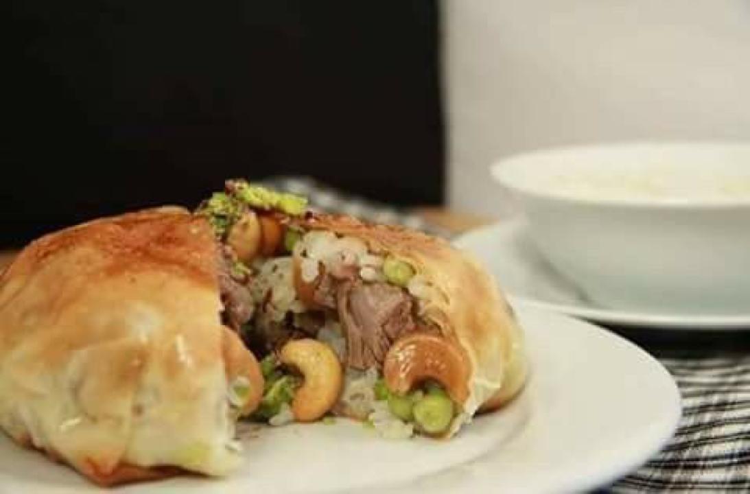 وجبة أوزي المحشية باللحمة زالبازلاء والرز