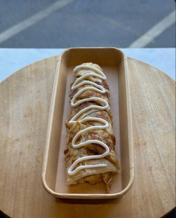 Tender shawarma rolled in chapati with creamy sauce and crisp vegetables.