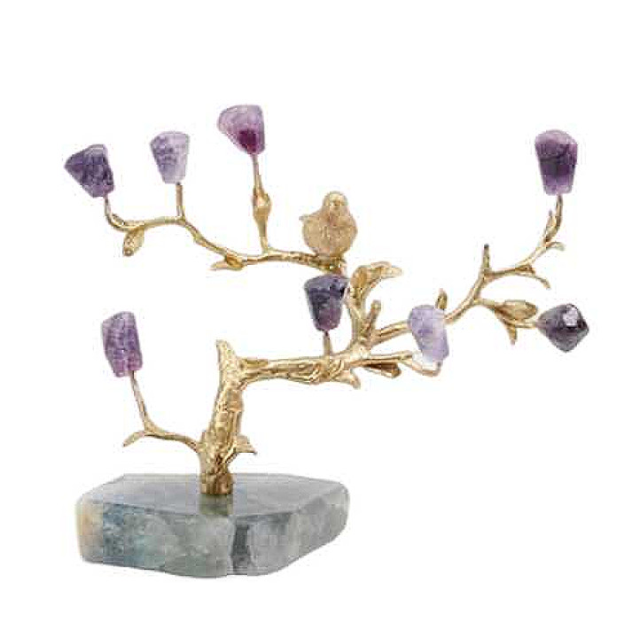 Material: brass+natural purple crystal stone+naturalgree n stone