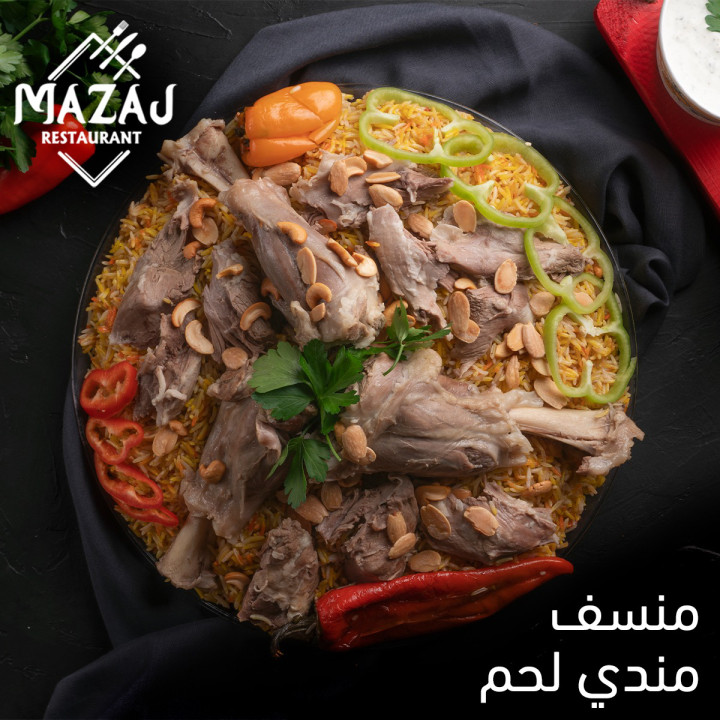 منسف مندي بلحمة الغنم البلدي (الموزات) مع المكسرات ل خمس اشخاص - Mazaj Restaurant & Cafe