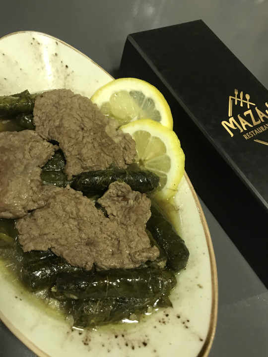 يبرق ( ورق عنب ) بشرحات لحم الغنم - Mazaj Restaurant & Cafe